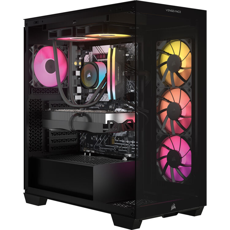 Enjoy exceptionally smooth gaming and content-creation experiences with the Corsair VENGEANCE i7500 Gaming Desktop Computer. Designed to deliver high performance and style, this desktop computer is outfitted with a 14th Gen Intel Core i7-14700KF processor, NVIDIA GeForce RTX 5070 graphics, and 32GB of DDR5-6000 memory. The included NAUTILUS RS ARGB liquid CPU cooler helps to maintain optimal temperatures during lengthy gaming sessions and heavy workloads.