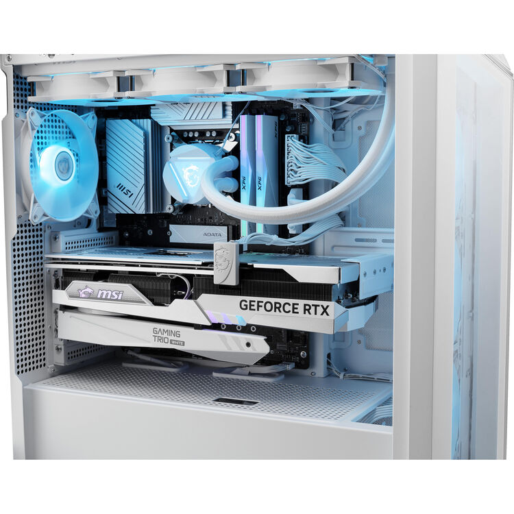 Connect your peripherals such as the included keyboard and mouse with an array of USB 2.0, 3.2 Gen 1, and Gen 2 ports. You can use Bluetooth 5.4 technology for wireless devices, giving you a cable-free experience. Connect to your network using Wi-Fi 7 wireless technology or use the onboard 2.5 GbE LAN port for a strong wired connection. This entire system comes in MSI’s GUNGNIR 210R case with a 360mm liquid cooler and ARGB lighting to ensure thermals are properly set for long-lasting gaming sessions while adding a sense of personalization and style.